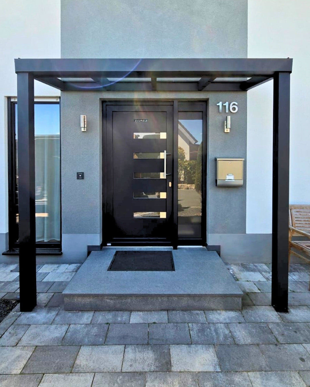 Genieße ganzjährigen Schutz und Komfort unter deiner neuen Eingangsüberdachung!