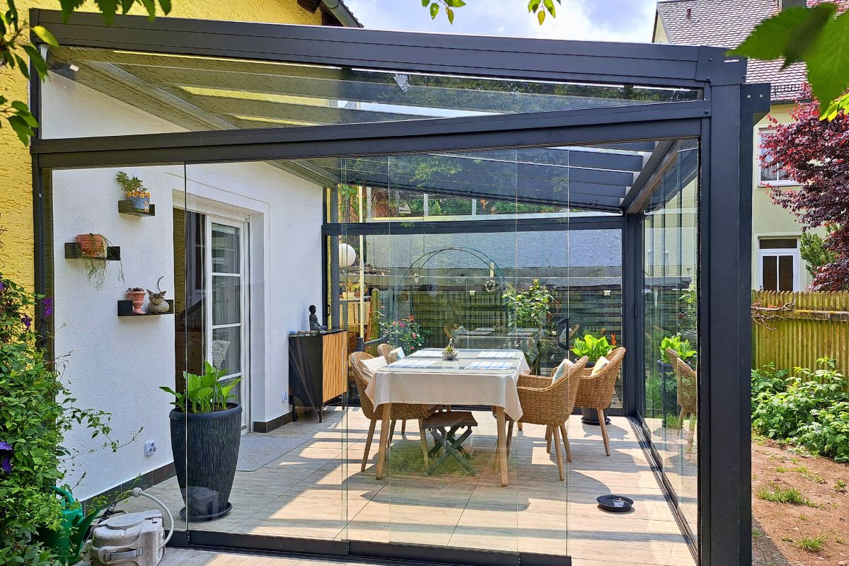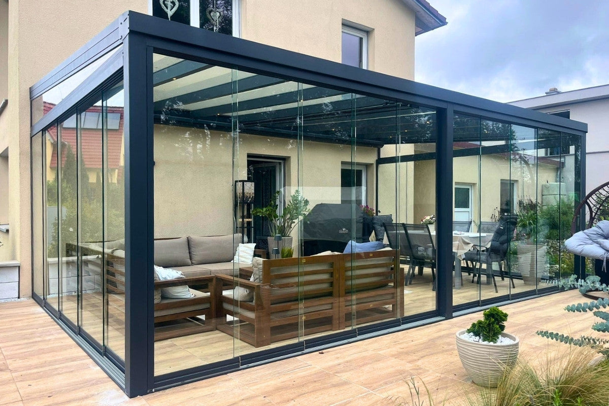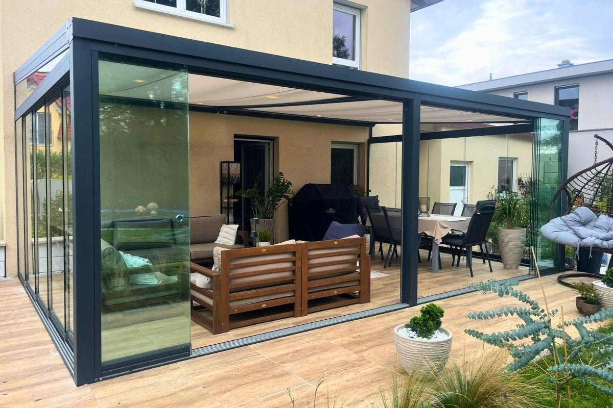 Flexibler Wetterschutz mit elegantem Design – die Schiebeanlage verwandelt Deine Terrasse in einen ganzjährig