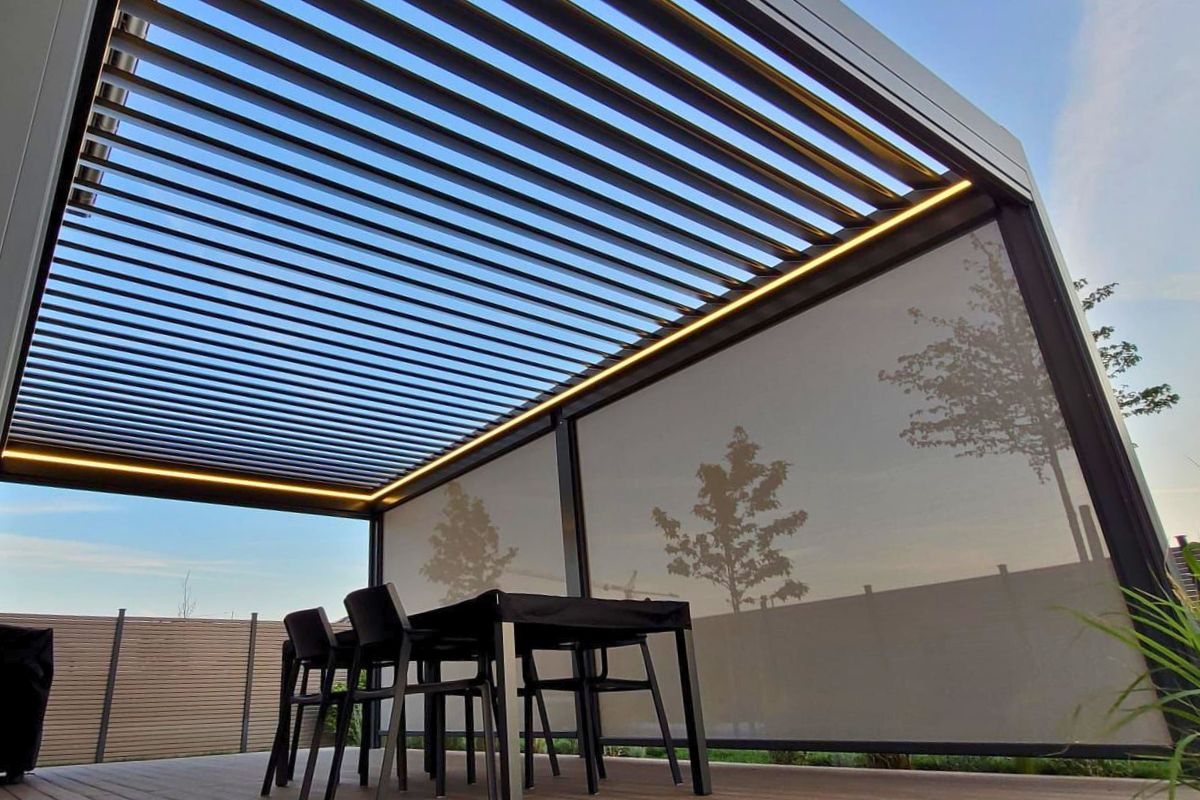 Gefertigt aus robustem Aluminium und hochwertigem Stoff aus Glasfaser, überzeugt sie durch Windbeständigkeit, einem vollautomatischen Refleksolsystem und Langlebigkeit.