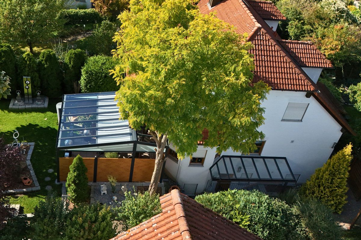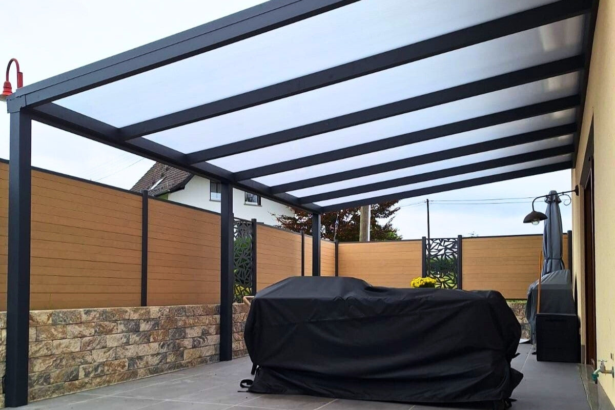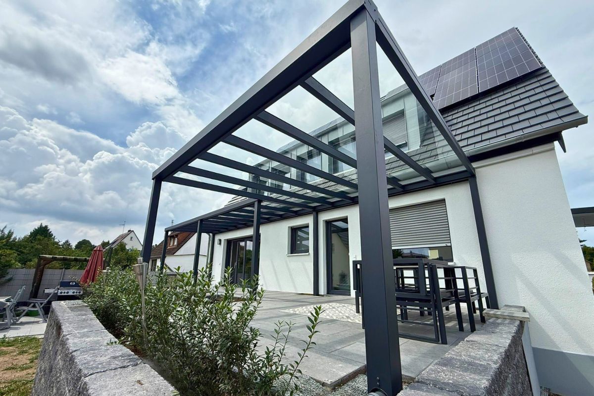 Schlicht, elegant und langlebig – die Überdachung verwandelt Deine Terrasse in einen lichtdurchfluteten Wohlfühlort.